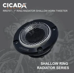 The new Cicada Audio RR1T Ring radiator Tweeters are a perfect solution for 2014 and later baggers, Harley or otherwise. These speakers are relatively easy fit. And Shallow. But still may need “Custom” installation. Making them PERFECT for custom coaxial mounting “in-grill” as it has been very popular as of late.
